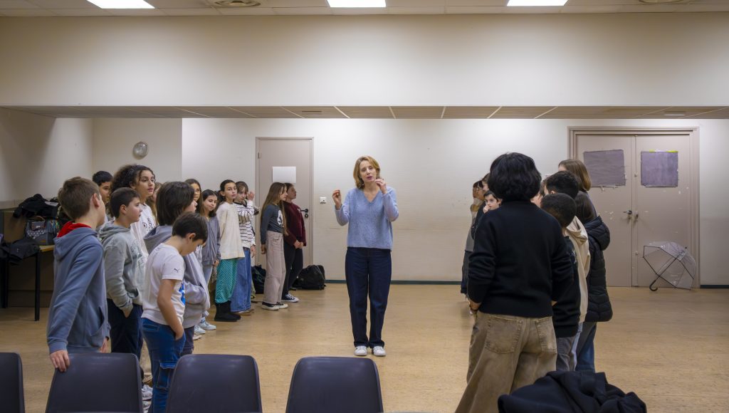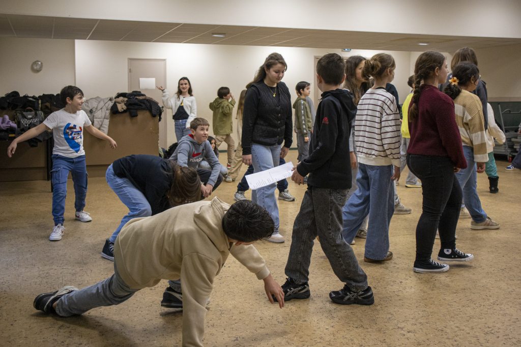 Avant de monter sur scène, un temps d’échauffement était consacré au travail du corps et de la voix : marcher dans l’espace, exprimer différentes humeurs (joie, colère, peur…), projeter la voix, exagérer les gestes… Un moment essentiel pour prendre confiance et oser jouer devant les autres.