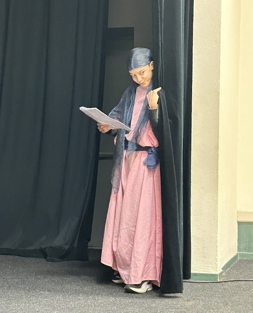 Les élèves incarnaient tour à tour un vieil avare méfiant, un esclave rusé, un jeune amoureux passionné, une jeune fille déterminée, un soldat fanfaron ou encore une voisine curieuse. Pour rendre l’expérience encore plus immersive, chacun était habillé d’un costume romain adapté à son personnage.