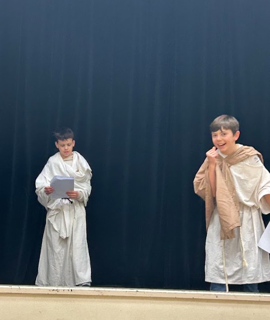 Au total, 31 élèves à chaque séance se sont transformés, le temps d’un après-midi, en véritables comédiens romains ! Par groupes de six, ils ont préparé et joué une courte comédie inspirée du théâtre latin. Au programme : quiproquos, personnages stéréotypés et situations pleines d’humour.