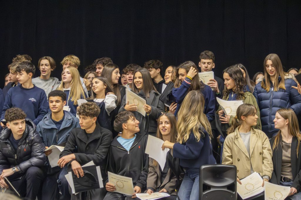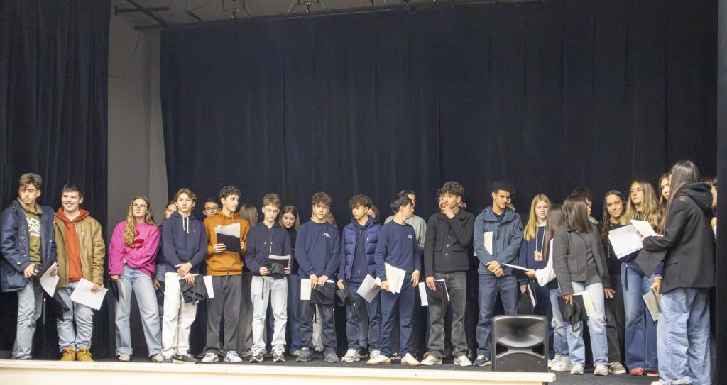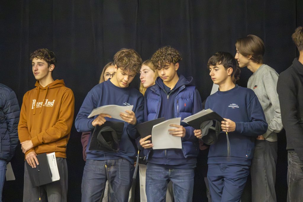 Après un accueil à la cantine autour d’un goûter nous nous sommes réunis à la MJC, où notre directeur, Jean-Fred Olivar, assisté par la communauté éducative et l’APEL, a salué le travail des élèves. Puis, chaque lauréat a été appelé et applaudi avant de monter avec son diplôme et sa toque sur la scène de la MJC.